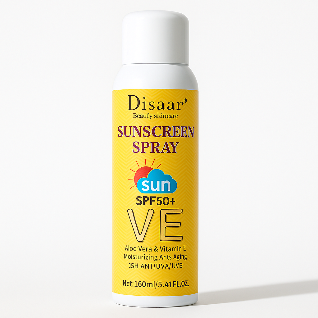 Le spray solaire DISAAR SPF50+ est une protection solaire haute performance conçue pour défendre efficacement la peau contre les rayons nocifs UVA et UVB. Sa formule enrichie en Aloe Vera hydrate intensément, prévient le vieillissement prématuré et aide à maintenir une peau douce, souple et éclatante tout au long de la journée. Sa texture légère en spray permet une application uniforme, sans traces blanches ni effet collant.