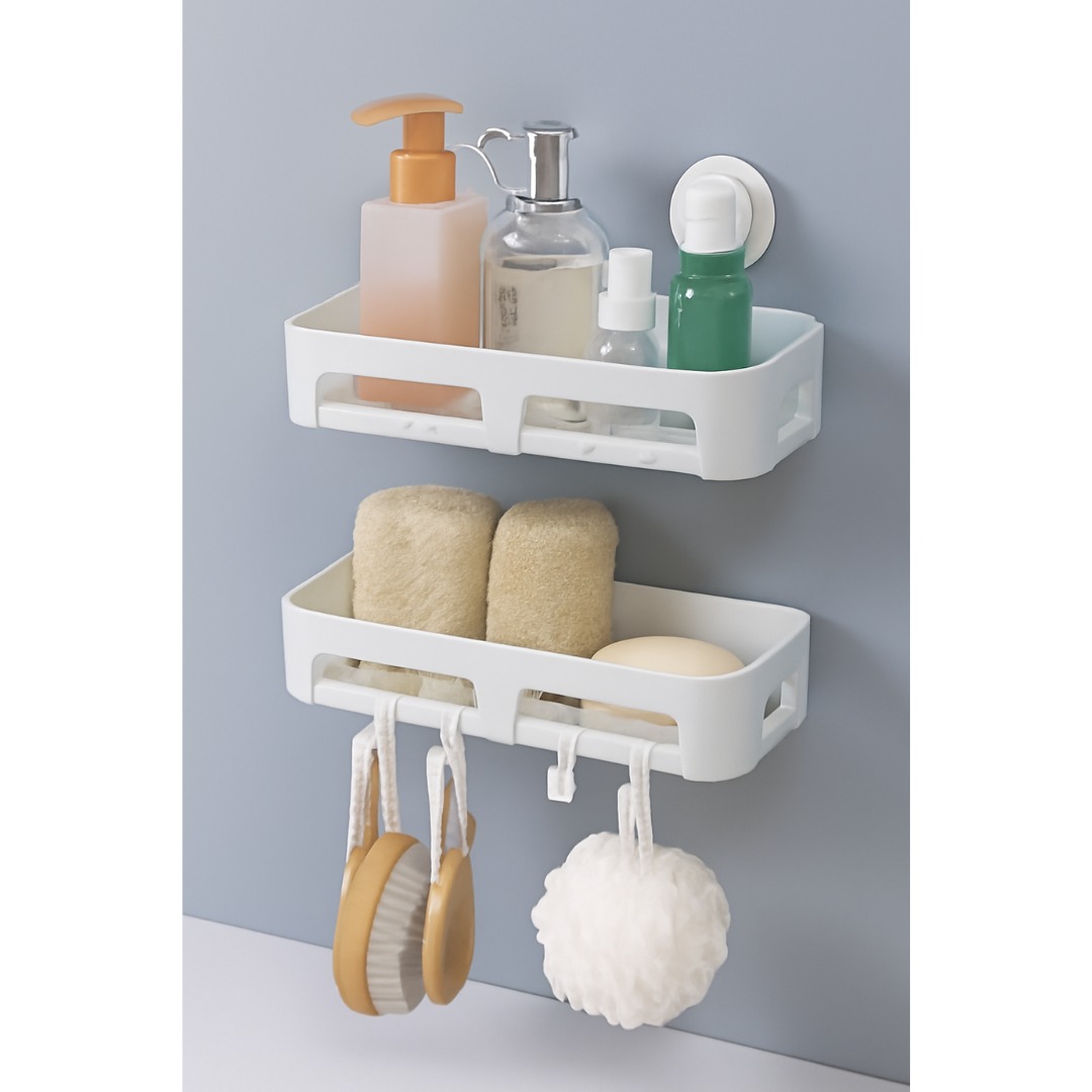 Organisez votre salle de bain avec cette étagère murale pratique et élégante. Conçue pour une installation facile et sans perçage grâce à son système auto-adhésif, elle est idéale pour ranger vos produits de douche, savons, et accessoires. Les crochets intégrés permettent de suspendre éponges, brosses et gants de toilette, maximisant ainsi l’espace de rangement. Fabriquée en plastique durable, cette étagère est un ajout parfait pour une salle de bain bien rangée et fonctionnelle.