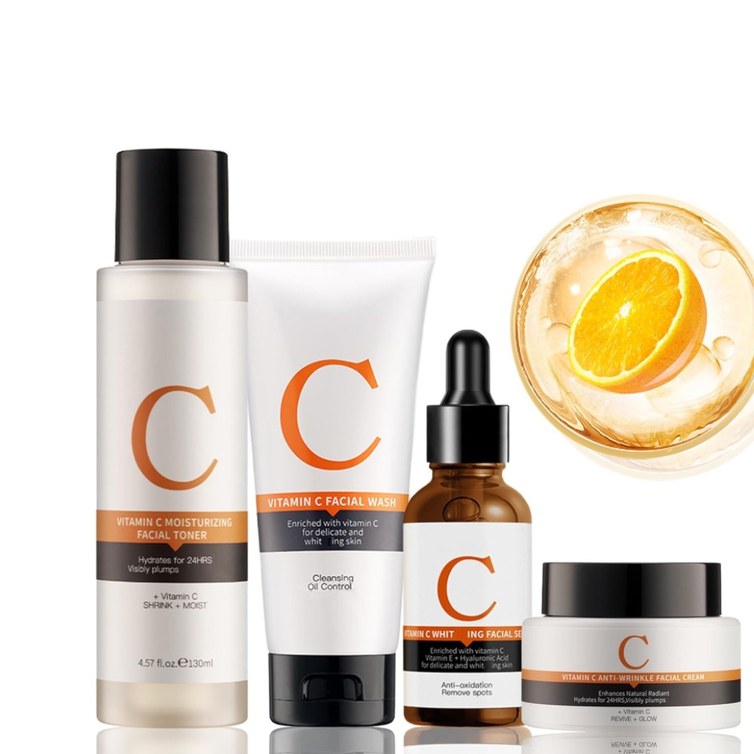 KORMESIC Kit Complet Soin Visage Vitamine C : Nettoyant, Tonique, Sérum, Crème Anti-Âge
